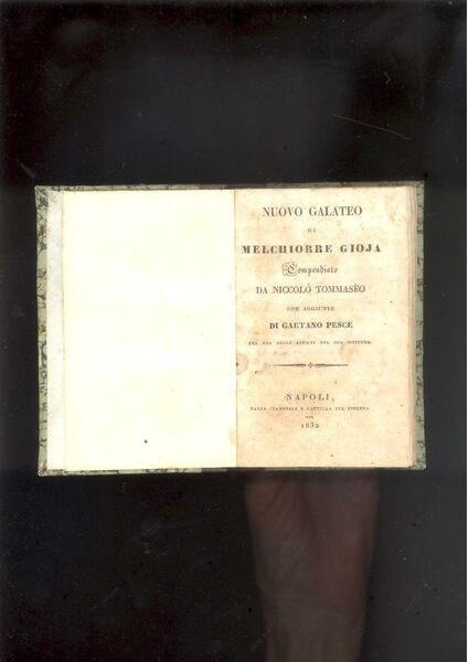NUOVO GALATEO DI MELCHIORRE GIOJA COMPENDIATO DA NICCOLO TOMMASEO CON AGGIUNTE DI GAETANO PESCE PER USO DEGLI ALUNNI DEL SUO ISTITUTO.