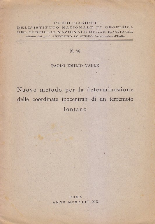 Pubblicazioni dell'Istituto Nazionale di Geofisica del CNR 1942 n° 78. 7 pagine.