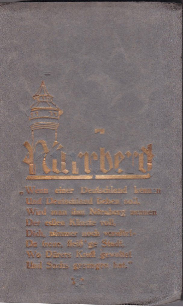 Die sehr gut erhaltenen 18 Postkarten im Kupfertiefdruck zeigen unter anderem die Frauenkirche mit Brunnen, Lorenzkirche, Nürnberger Bratwurstglöcklein (erbaut 1313), das Gänsemännchen, Hauptbahnhof, Dürerhaus, Burgansichten und -Ausblicke von derselben, Königstrasse und anderes.