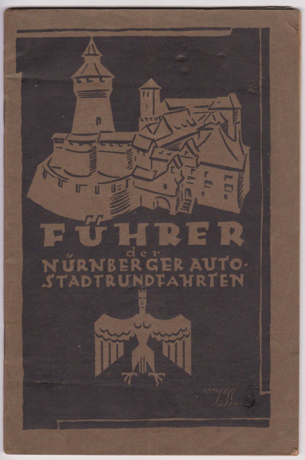 - Original Karton mit illustriertem Deckeltitel (hier: Führer der Nürnberger Auto-Stadtrundfahrten).