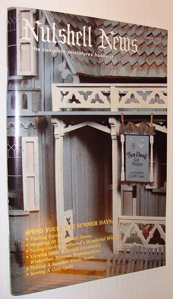 • Nutshell News Magazine - For the Complete Miniature Hobbyist, August 1985 - Fun for Your Late Summer Days! Shoreside Shell, Shop, Birthplace of a Dollhouse, Ellen Krucker Blauer's Colorful Carpeting, Vee Kniseley's Busy "Retirement", Carolyn Lockwood's wicker wonders, Virginia Lanham's high rise in the woods, Linda and Gerald Crawford reproduce Winterthur museum pieces, Texas miniaturist Elaine Eitel's Dollhouse Museum, Lillie's Loveable Bratz, Bathroom Accessories in Miniature, Joann's Hammock heaven, Mary Eccher's Creole foods, Cozy American Quilts, Picnic in a Basket, Helen and Jim Dorsett - fireside stool and Victorian Trestle, Crafts and Hobbies Magazine Back Issues