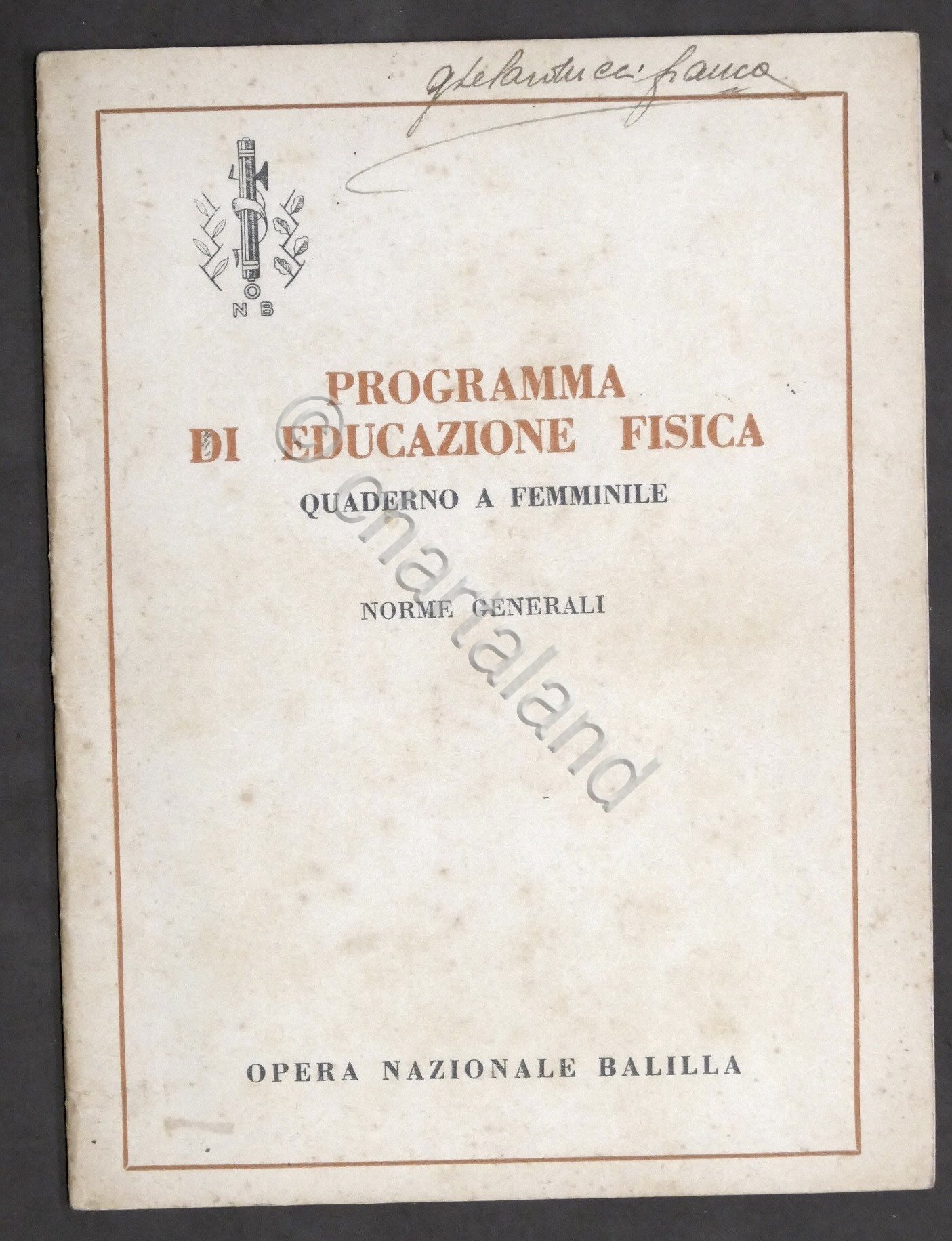 O.N.B. - Programma di educazione Fisica - Quaderno A Femminile - Norme Generali - 1930 ca. Pag. 30 Copertina morbida - Testo in italiano. Condizioni molto buone.