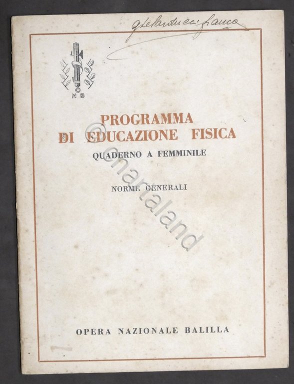 O.N.B. - Programma di educazione Fisica Quaderno A Femminile - Norme - 1930 ca.