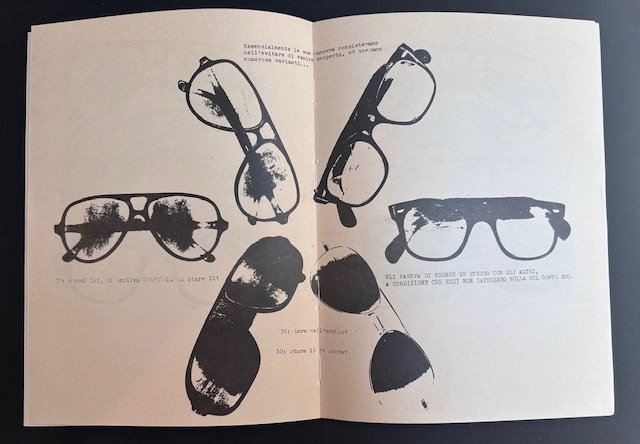 In-8°, pp. 24 n.n. interamente illustrate, brossura editoriale. Tiratura limitata a 500 copie di cui 460 numerate da 1 a 460 e 40 (con interventi manuali dell'autore) numerate da I a XL e firmate. A partire dal marzo 1981, in coincidenza con la ripresa delle pubblicazioni della rivista 'Tam Tam' in nuovo formato, i libri di poesia, sin allora usciti nelle collane delle Edizioni Geiger, furono pubblicati come supplementi ai vari numeri del periodico, contrassegnati, oltre che dal relativo numero della rivista, da lettere dell'alfabeto. Dall'81 fino all'89 ( ai libri delle Edizioni Geiger si sostituirono dunque i libri di 'Tam Tam', dal formato variabile come la rivista.