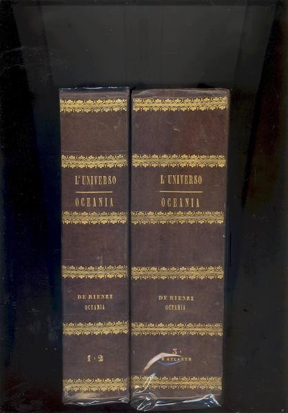 TRE VOLUMI IN DUE TOMI IN 8° COSI' RIPARTITI : TOMO PRIMO ( VOL. 1° e 2° ), pp.416 e 411.<BR>NEL PRIMO VOLUME, ALLE pp.81 - 84, SONO RIPORTATI BRANI MUSICALI DI ARIE E CANTI DELLE ISOLE. TOMO SECONDO ( VOL. 3° ), pp: 624. A SEGUIRE L'ATLANTE CON LE 312 INCISIONI f.t. in b/n., COME RIPORTATO NEL FRONTESPIZIO, DI CUI LE ULTIME CINQUE DOPPIE + v.r. CHE RAPPRESENTANO : 1, SCHIZZO D' UNA CARTA GEOGRAFICA ED ETNOGRAFICA DELL'ISOLA CALEMANTAN O BORNEO, 2, MELANESIA DIETRO LE CIRCONSCRIZIONI AGGIUNTE DA M. DE RIENZI. 3, POLINESIA E MICRONESIA. 4, MALESIA. 5, OCEANIA. OPERA FACENTE PARTE DELLA COLLANA " L'UNIVERSO " O STORIA E DESCRIZIONE DI TUTTI I POPOLI, ECC. TRADUZIONE DI A. FRANCESCO FALCONETTI, TESTO SU DUE COLONNE. LEGATURE D'EPOCA IN MEZZA PELLE CON TITOLO E FREGI IN ORO, PIATTI RIGIDI MAREZZATI. DA SEGNALARE CHE LE TAVV., SONO 314 E NON 312 COME RIPORTATO NEL FRONTESPIZIO, IN QUANTO LE TAVV. GEOGRAFICHE RIPIEGATE SONO CONSIDERATE DOPPIE, COME SI RISCONTRA IN ALTRI VOLL. DELLA COLLANA. OTTIMA CONSERVAZIONE GENERALE. ID, 5383