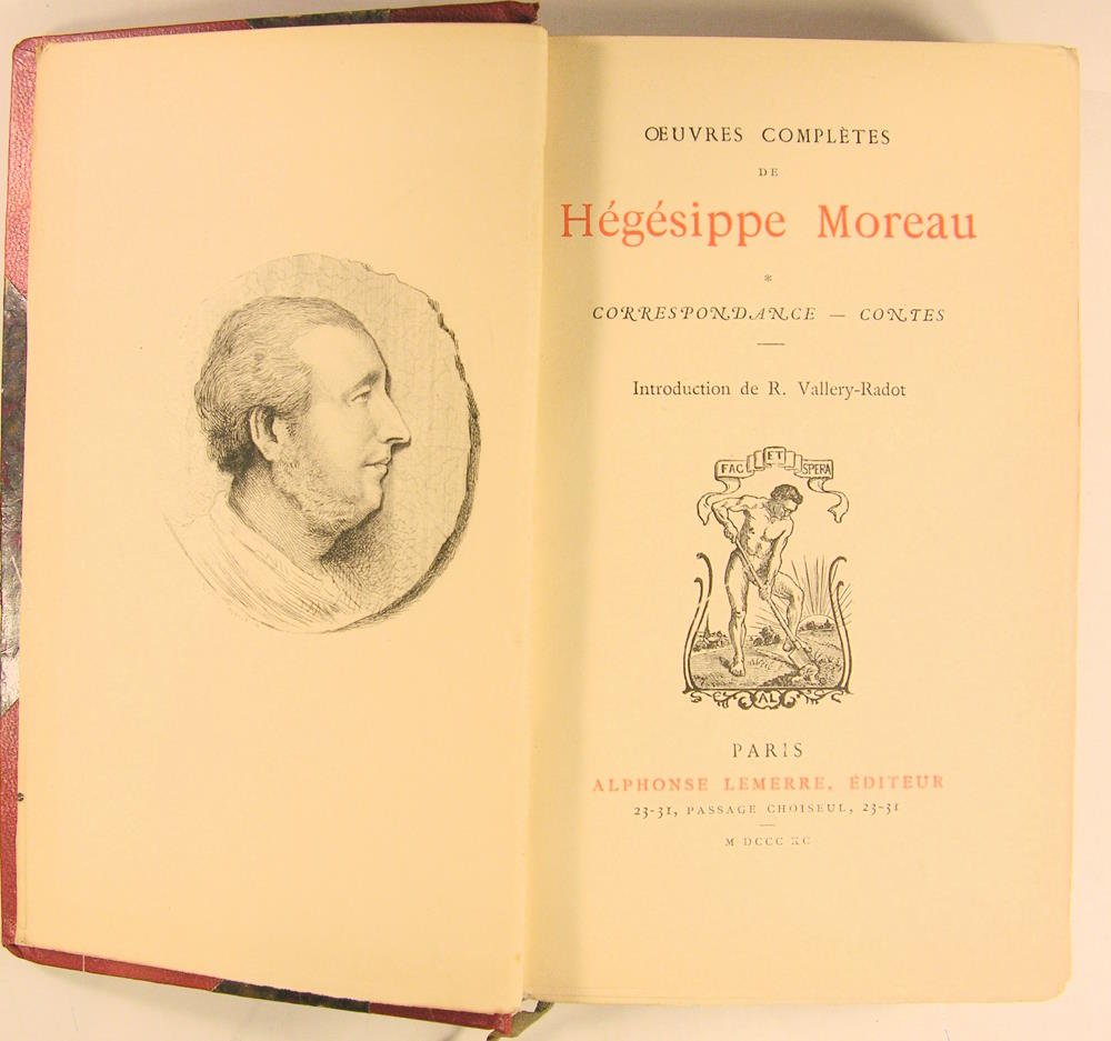 Librairie Alphonse Lemerre 1890. In/16, 311 pages, reliure demi-basane rouge à coins, à nerfs, doré sur tête. Portrait en frontispice, gravure de F. Masse. Introduction de R. Vallery-Radot.
