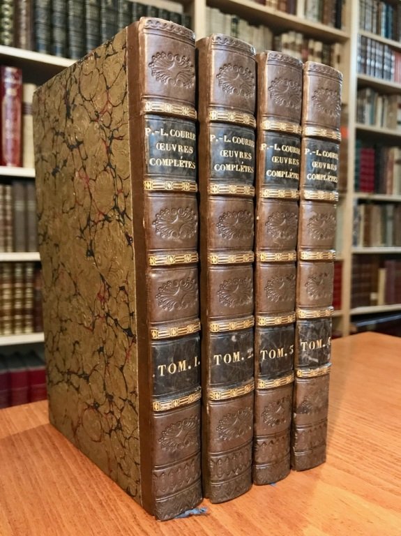 4 volumi in-8° (cm. 20,8), elegantissime legature coeve in mezza pelle con titolo in oro, fregi a secco ai comparti e fregi in oro ai nervi dei dorsi, piatti marmorizzati e con decorazioni floreali a secco, tagli spruzzati, risguardi marmorizzati; carte in buono stato, 1 tavola di ritratto f.t. in antiporta; lievi e sporadiche fioriture. Ottimo esemplare. (NK2)