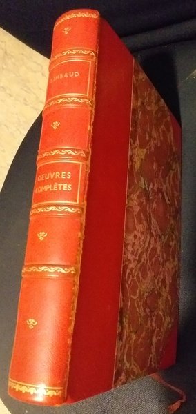BELLA LEGATURA IN MEZZA PELLE ROSSA CON NERVI E TITOLI IN ORO, PIATTI MARMORIZZATI. RARA EDIZIONE STAMPATA DURANTE L'OCCUPAZIONE TEDESCA IL PRIMO MARZO 1945 DA TUMMINELLI. OPERA IN 500 ESEMPLARI NUMERATI, LA NOSTRA COPIA E' LA N. 254. TESTO IN LINGUA FRANCESE numero pagine: 311 formato: 23.3X18 stato conservazione: BUONO, MINIMA ABRASIONE ALLA PELLE DELLA PIEGA DEL DORSO collana: COLLECTION DES POETES MAUDITS - VOLUME TERZO DELLA COLLEZIONE