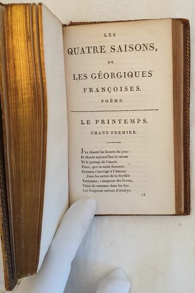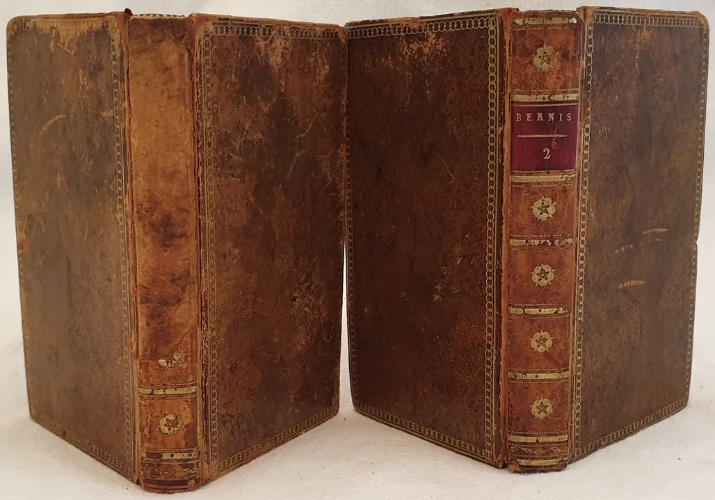 Edizione del 1810 di questa raccolta di opere del cardinale e diplomatico francese Francois Joachim de Pierre Cardinale de Bernis (1715-1794). Il Cardinale de Bernis fu una delle figure prominenti nell'autobiografia di Giacomo Casanova "Histoire de ma vie". L'opera è formata da due tomi ed è completa. Ritratto del Cardinale in antiporta. Le opere presenti: Epitres, Poesie diverses, Les quatre parties du jour, Les quatre saisons, Reflexions sur les passions, Reflexions sur la curiosite, Reflexions sur le gout de la Campagne, La religion vengee, Discours. Note manoscritte. In buone condizioni e completo. Copertina in piena pelle coeva con titolo e decorazioni in oro al dorso e piatti in buone condizioni generali con lievi usure ai margini e dorso. Legatura in buone condizioni. Pagine in buone condizioni con fioriture. Tassello al primo tomo mancante. In 24. Dim. 14x9 cm. Pp. 216, 282. Edition of 1810 of this colelction of works by the french Cardinal and diplomatic Francois Joachim de Pierre Cardinale de Bernis (1715-1794). Cardinal de Bernis was one of the most prominent figures in the autobiography of Giacomo Casanova "Histoire de ma vie". The work is made up of two tomes and it is complete Portrait of the Cardinal in the frontspice. The works inside: Epitres, Poesie diverses, Les quatre parties du jour, Les quatre saisons, Reflexions sur les passions, Reflexions sur la curiosite, Reflexions sur le gout de la Campagne, La religion vengee, Discours. Handwritten notes. In good conditions and complete. Full leather coeval cover with golden title and decorations in the spine and plates in good general conditions lightly worn in the extremities. Binding in good conditions. Pages in good conditions with foxings. Leather label in the first tome lacks. In 24. Dim. 14x9 cm. Pp. 216, 282.