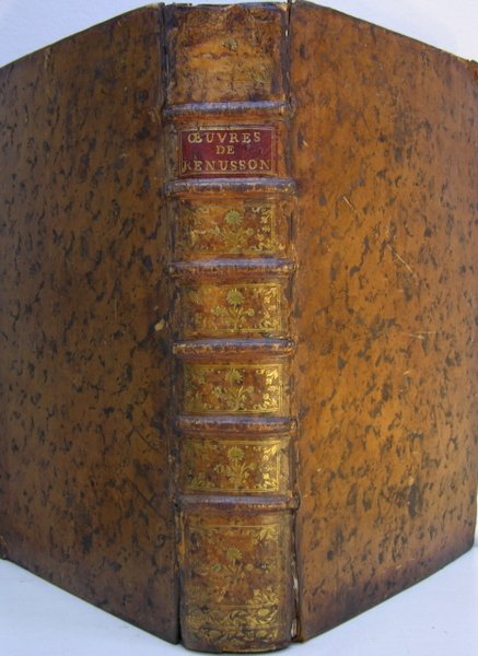 A Paris, chez Colombier libraire, 1777. In folio reliure plein veau du temps tacheté, dos à nerfs à caissons dorés et pièce de titre rouge, tranches jaspées, I° : xij ff., 278 p. ; II° : 2 ff., 132 p., 4 ff. - 3° : 2 ff., 85 p., 3 ff., iv ff. - IV° : 1 ff., 404 p., 1 ff. - V° : 1 ff., iv ff., 138 p. Coiffe supérieure manquante, manque à la coiffe inférieure, mors partiellement ouverts ; coins amortis ; quelques rousseurs éparses. RENUSSON (Philippe), jurisconsulte français (1632 -1669). Il exerça la profession d'avocat près du parlement de Paris et acquit une grande réputation pour ses ouvrages. Fo in full contemporary spotted calf, ribbed spine with gilt panels & red label, jaspered edges, vol. 1 : [12], 278 p. - vol. 2 : [2], 132 p., [4] - vol.3 : [2], 85 p. [3, [6] - vol. 4 : [1], 404 p., [1] - vol. 5 : [1], [4], 138 p.Flaws : upper-tip lacking, joint partially cracking ; corners bumped ; some sporadic foxings.