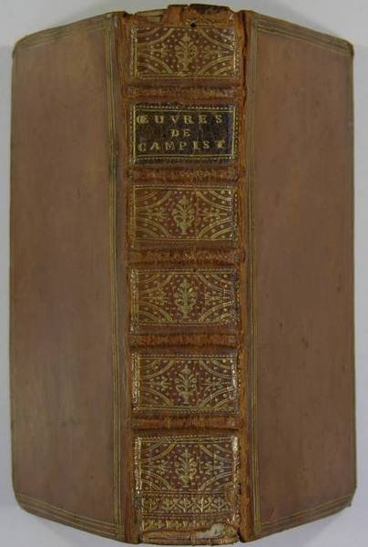 A Paris, chez la veuve Pierre Ribou, 1731. In-12 (16 x 10 cm) reliure plein veau du temps, dos à nerfs à caissons dorés et pièce de titre brune, triple filets sur les plats, roulette sur les coupes, dentelle intérieure, tome 1 : 5 f., 371 p. - tome 2 : 5 f., 372 p. Coiffes abîmées, usures sur les coins inférieurs, manque une garde volante, bel exemplaire cependant. Jean Galbert de Campistron, né et mort à Toulouse (3 août 1656 - 11 mai 1723). Il obtint par sa protection la place de secrétaire du duc de Vendôme, qu'il suivit dans toutes ses guerres en se faisant remarquer par sa bravoure. Il fut l'un des premiers mainteneurs de l'Académie des Jeux floraux, en 1694. Larousse précise à propos de l'auteur : "Campistron ne fut pas seulement l'imitateur de Racine, . il écrivit aussi des comédies et des tragédies en musique en collaboration avec Lully".