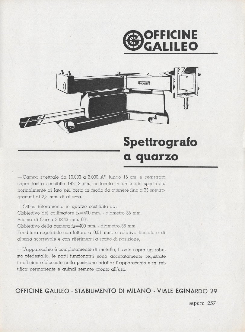 Officine Galileo, Spettrografo a quarzo - Advertising 1938