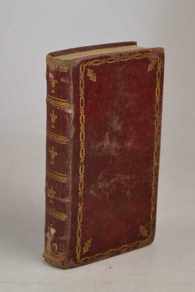 Cm. 13,5, pp. 432. Bella leg. coeva in piena pelle rossa con fregi in oro a dorso e piatti. Tagli dorati. Alcuni forellini di tarlo al dorso, peraltro ben conservato, elegantemente stampato a caratteri grandi su carta di buona qualità. Non comune.