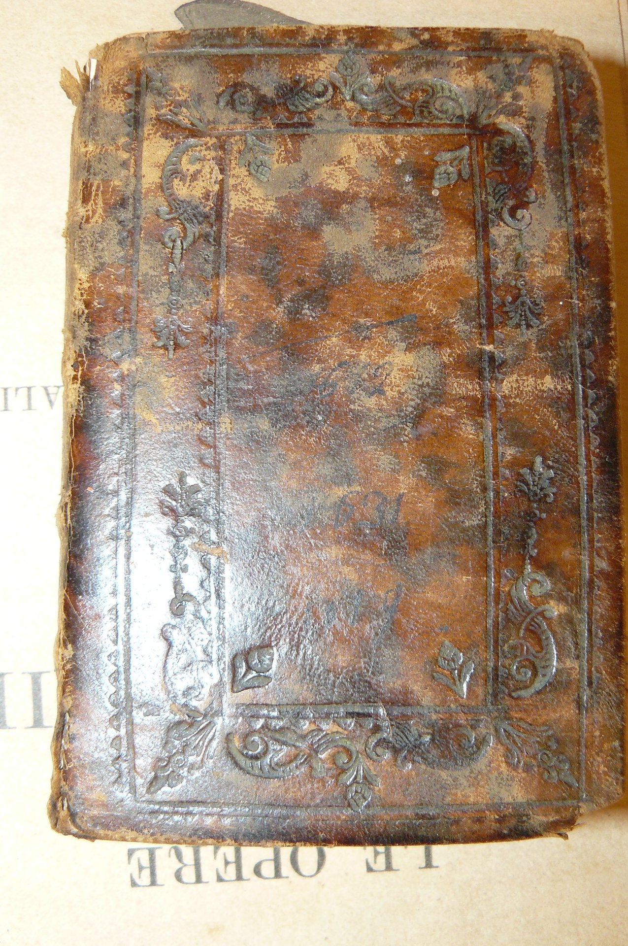 In-32°, pp. 446, bella legatura coeva in piena pelle su piatti in legno, dorso a quattro nevi e fregi a secco, ai piatti duplice cornice lineare che racchiude una seconda cornice a motivi di fogliame e floreale, tagli dorati. Lievi usure agli angoli, mancanza alla cuffia superiore.