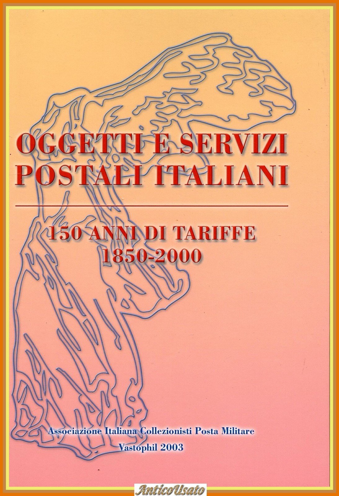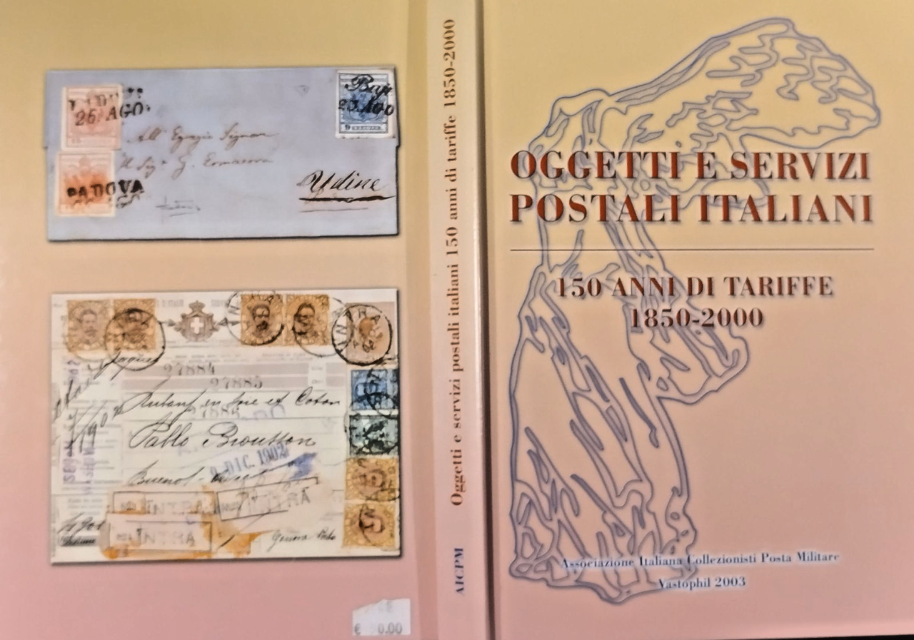 OGGETTI E SERVIZI POSTALI ITALIANI 150 ANNI DI TARIFFE 1850 - 2000 a cura di Emmanuele M. Gabbini. Vastophil Editore, 2003 . 215 pagine, numerose fotografie a colori nel testo. Copertina editoriale in cartone rigido. Stato di conservazione: QUASI NUOVO Libro usato saggistica