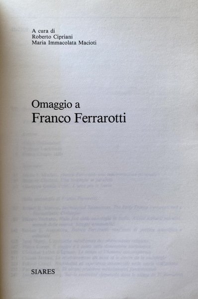 OMAGGIO A FRANCO FERRAROTTI. A CURA DI ROBERTO CIPRIANI, MARIA IMMACOLATA MACIOTI