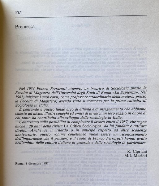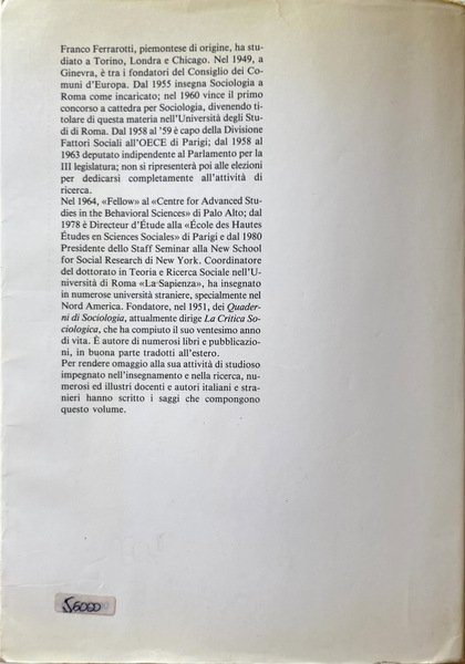 - Scienze sociali, Sociologia, Opere generali, Scritti, Studi culturali, Bibliografia, Critica, Monografie, Saggi, Ricerca, Franco Ferrarotti