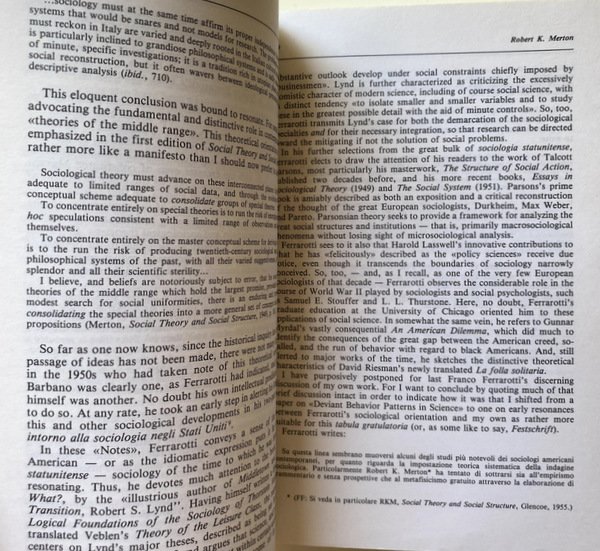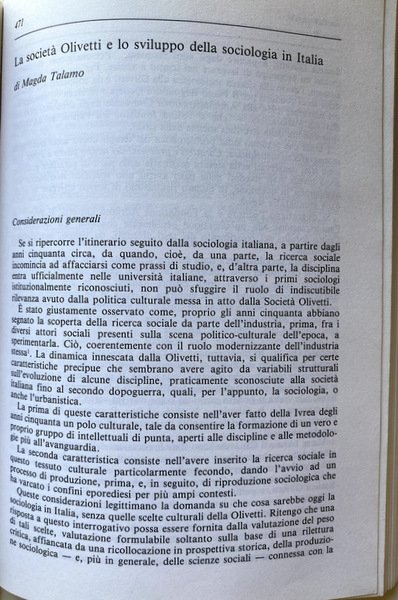 Soggetti: Scienze sociali, Sociologia, Scienze umane, Opere generali, Lavori, Scritti sociologici, Raccolte, Antologie, Studi culturali, Bibliografia, Recensioni, Monografie, Saggi, Indici, Ricerca sociologica, Franco Ferrarotti, Ralf Dahrendorf, Ralph, Critica Sociologica, Riviste, Libri Vintage Fuori catalogo, Lettere, Omaggi, Scritti in onore, Università, Accademici, Intellettuali, Ricerca sociologica, Testimonianze, Interventi, Allievi, Maestri, Robert Merton, Jean Séguy, Quaderni, Società, Politica, Comunicazione, Trattati, Pensiero sociologico, Storia, Storiografia, Rassegne, Metodo, Metodologie, Didattica, Multidisciplinarità, Discipline sociali, Scienza politica, Politologia, Statistica, Indagini, Inchieste, Interviste, Intervista, Dato qualitativo, Ideologie, Religione civile, Max Weber, Linguaggio, Temi e problemi, Politica scientifica e culturale, Teorie sociologiche, Teoria dell'azione, Sviluppo, Democrazia, Burocrazia, Religione, Diplomazia, Interazionismo, Soggettivismo, Uguaglianza, Camilo Torres, Libano, Irlanda del Nord, Relazioni internazionali, Società aperta, Trasformazioni, Socialità, America, Classi, Totalitarismo burocratico, Corporations, Olivetti, Marxismo, Lavoro, Welfare, Sindacalismo, Sacro, Violenza, Arte, Classe agiata, Filippo Barbano, Mosca, Vilfredo Pareto, Luckmann, Penny Chapin Hills, Franco Crespi, Sabino Acquaviva, Jacques Zylberberg, Claude Javeau, Paolo Ammassari, Agnes Heller, Kappler, Schwab, Julien Freund, Alain Touraine, Bensman, Karel Dobbelaere, Houtart, Vidich, Voyé, Tullio Tentori, Educational Dilemma, Social sciences, Sociology, Human sciences, General works, Works, Sociological writings, Collections, Anthologies, Cultural studies, Bibliography, Reviews, Monographs, Essays, Indexes, Sociological research, Sociological criticism, Magazines, Out of print books, Letters, Tributes, Writings in honor, Universities, Academics, Intellectuals, Sociological research, Testimonials, Interventions, Students, Masters, Notebooks, Society, Politics, Communication, Treatises, Sociological Thought, History, Historiography, Reviews, Method, Methodologies, Didactics, Multidisciplinarity, Social disciplines, Political science, Politology, Statistics, Surveys, Inquiries, Interviews, Interview, Qualitative data, Ideologies, Civil religion, Language, Themes and problems, Scientific and cultural policy, Sociological theories, Theory of action, Development, Democracy, Bureaucracy, Religion, Diplomacy, Interactionism, Subjectivism, Equality, Lebanon, Northern Ireland, International relations, Open society, Transformations, Sociality, Classes, Bureaucratic totalitarianism, Corporations, Work, Syndicalism, Sacred, Violence, Comfortable class
