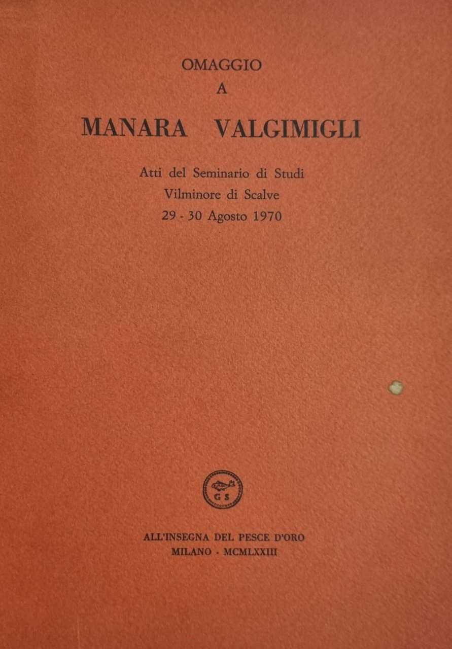 OMAGGIO A MANARA VALGIMIGLI. ATTI DEL SEMINARIO DI STUDI VILMINORE DI SCALVE 29 - 30 AGOSTO 1970.