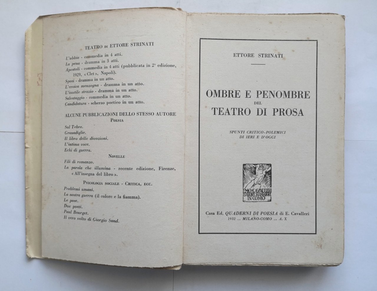 OMBRE E PENOMBRE DEL TEATRO DI PROSA Ettore Strinati 1932 spunti critici Libro