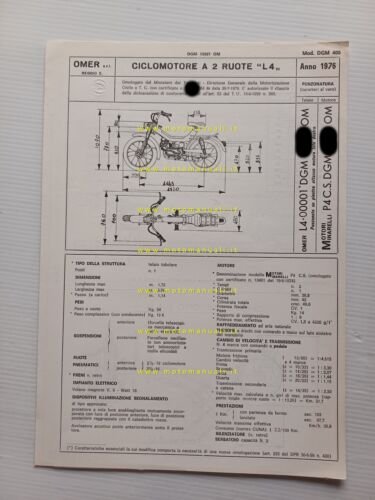 OMER 50 L4 Lory 4v 1976 scheda omologazione DGM Motorizzazione Facsimile