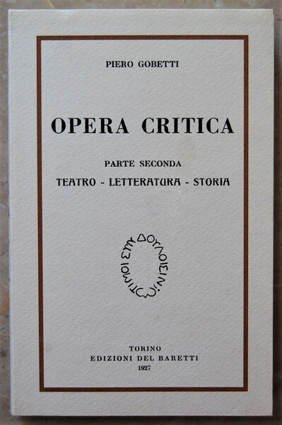 OPERA CRITICA. PARTE SECONDA. TEATRO LETTERATURA STORIA.