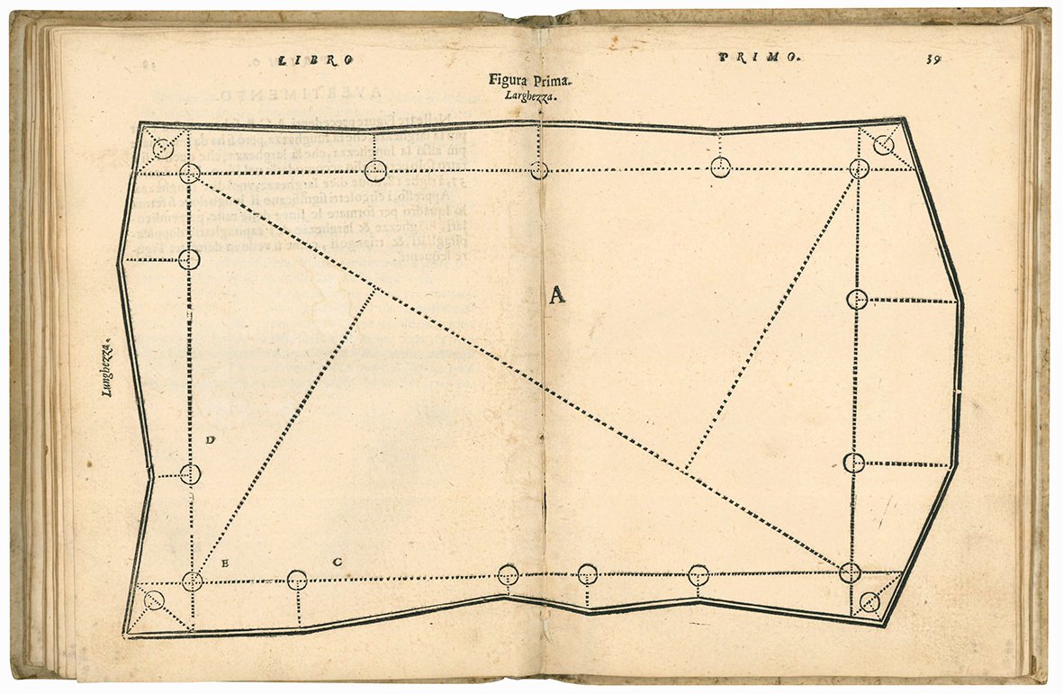 Opera del misurare, di m. Girolamo Cataneo novarese libri II. Nel primo s'insegna a' misurar, & partir' i campi, nel secondo a' misurar le muraglie, imbottar grani, vini, fieni, & strami; col livellar l'acque, & altre cose necessarie a gli agrimensori. Libro primo