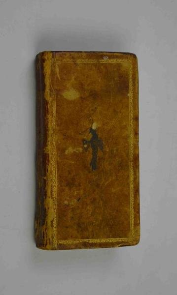 Cm. 11, pp. 336. Bel frontespizio figurato. Legatura del tempo in piena pelle con piatti inquadrati da cornice dorata e piccoli stemmi al centro dei piatti. Usure alla legatura, peraltro, internamente buon esemplare, genuino.