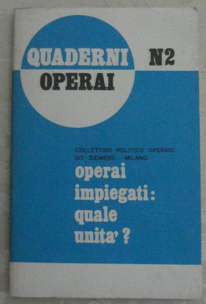 OPERAI IMPIEGATI: QUALE UNITA'. QUADERNI OPERAI N. 2
