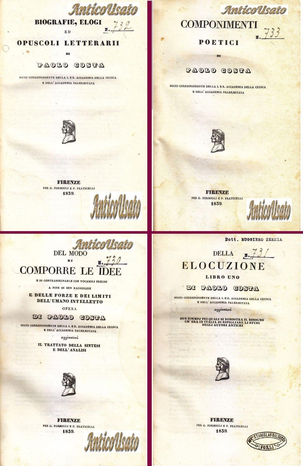 OPERE COMPLETE di Paolo Costa 4 VOLUMI completo 1839 Formigli libro antico