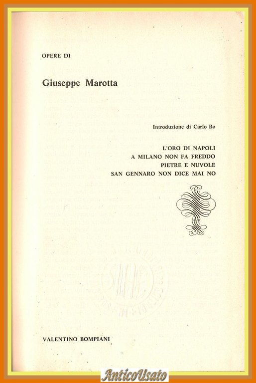 OPERE DI GIUSEPPE MAROTTA 1967 Bompiani Libro L'oro di Napoli pietre e nuvole