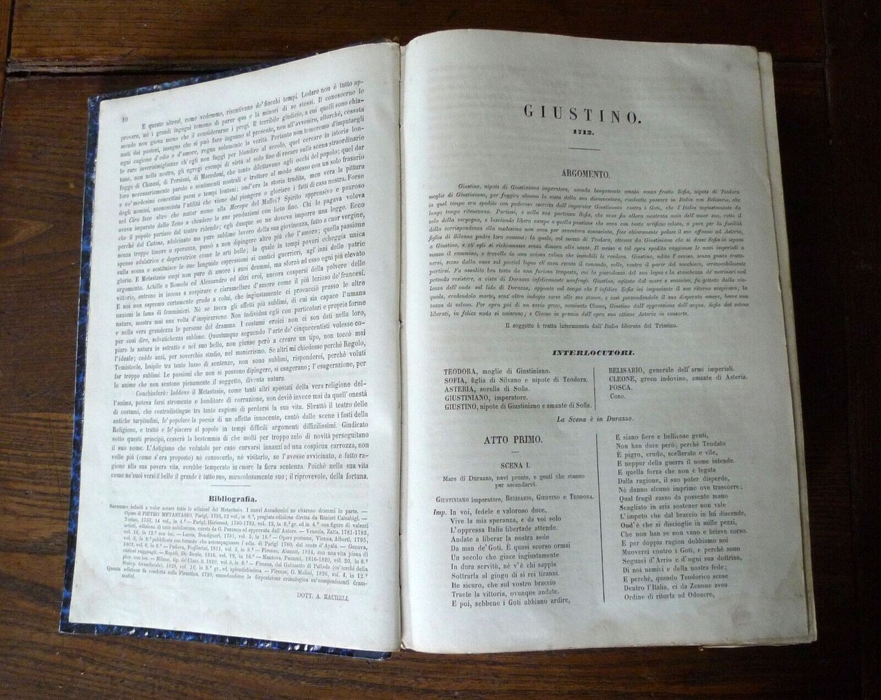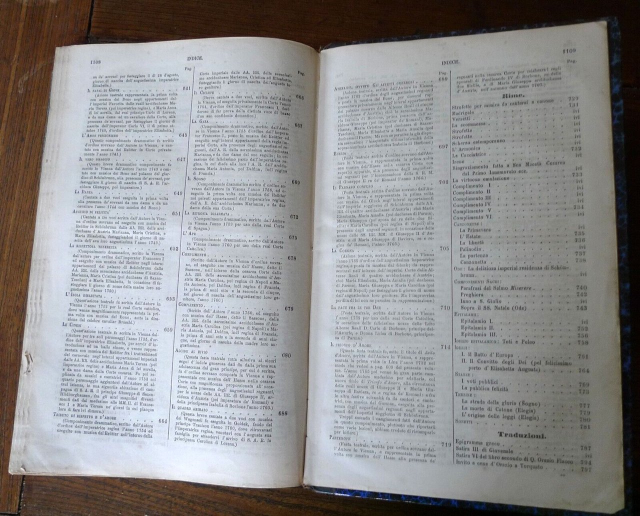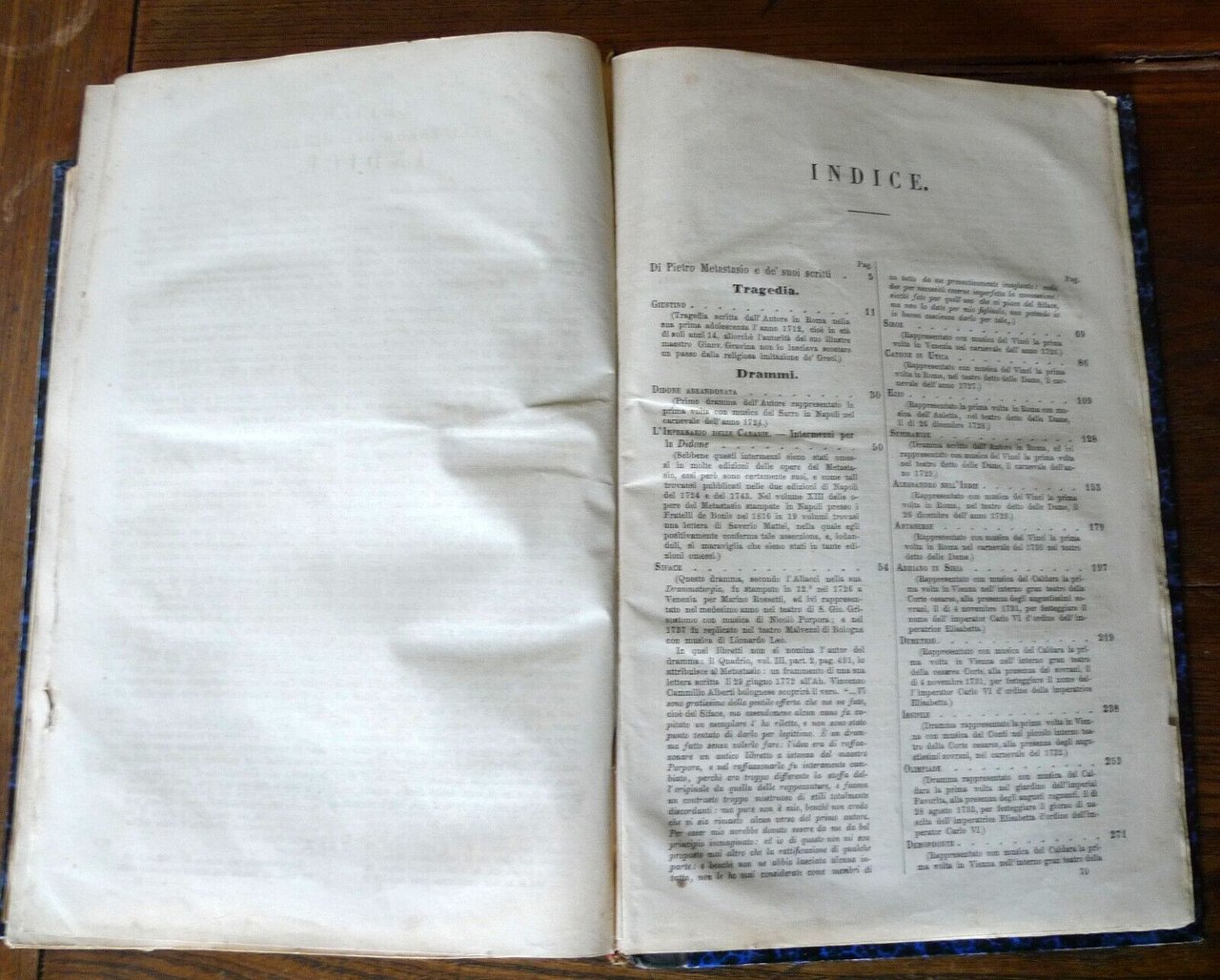 OPERE DI PIETRO METASTASIO.VOLUME UNICO.Trieste, Sezione Letterario-Artistica del Lloyd austriaco, 1857,copertina rigida, rilegatura coeva in mezza pelle,27,5x18 cm., pp.1114,peso: kg.1,85