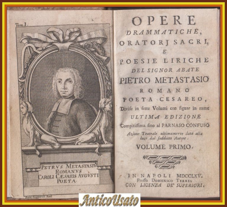 OPERE DRAMMATICHE di Pietro Metastasio Volume I 1765 Terres Libro Didone Adriano