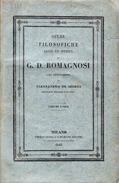 Opere filosofiche edite ed inedite di G. D. Romagnosi. Volume unico. Con annotazioni di Alessandro De Giorgi
