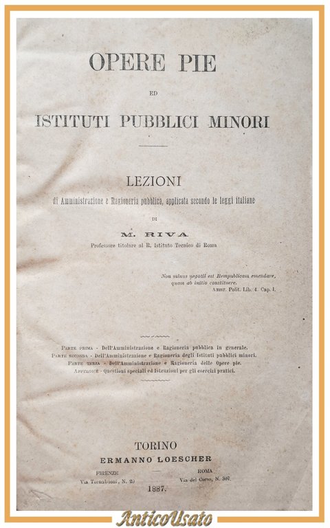 OPERE PIE ED ISTITUTI PUBBLICI MINORI lezioni di Riva 1887 Loescher libro antico