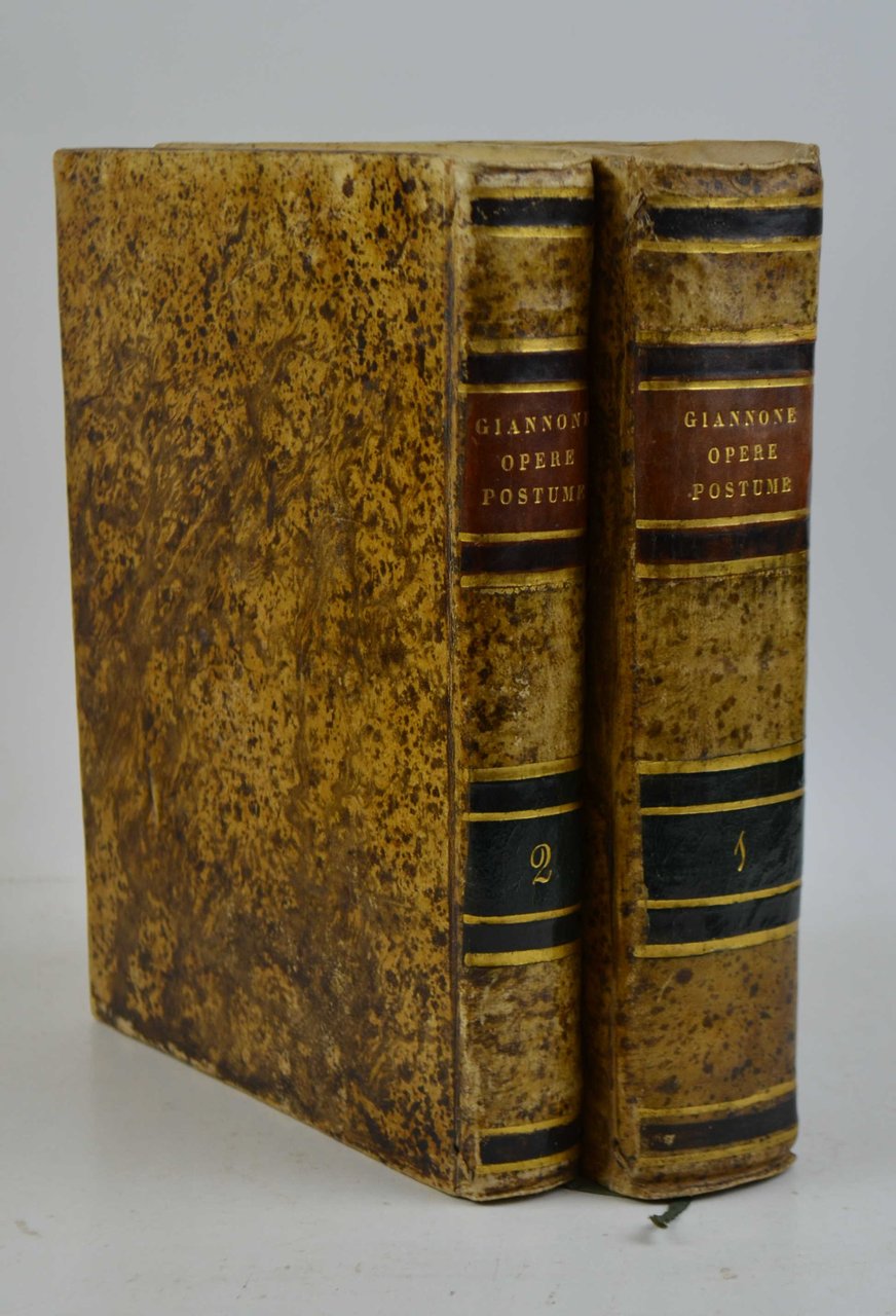 Due volumi di cm. 23,5, pp. 576, 53 (1); 418. Legatura uniforme in piena pergamena marmorizzata, dorsi lisci con filetti in oro e titoli su doppi tasselli bicolore. Ben conservato. Il secondo volume titola: Seconda parte contenente alcune sue opere finora inedite e precedute dalla vita del medesimo autore. I dati tipografici sono: In Londra, 1766.