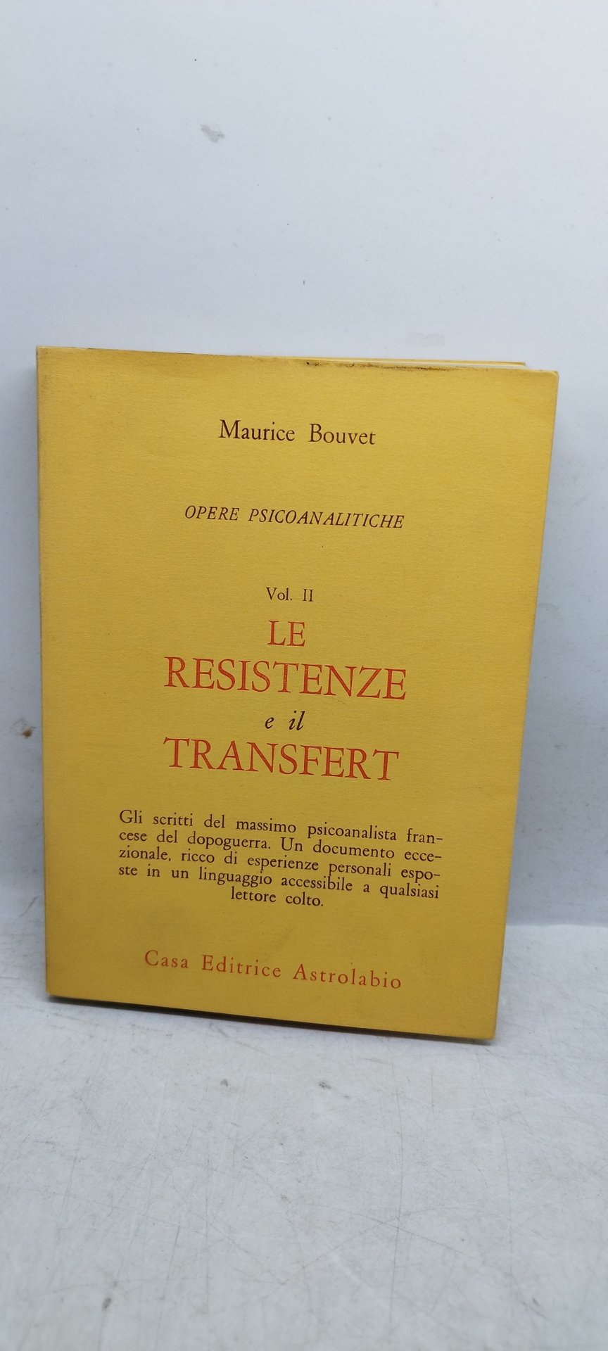 maurice bouvet opere psicoanalitiche vol II le resistenze e il transfert. , astrolabio 1975 italiano, 288 °°