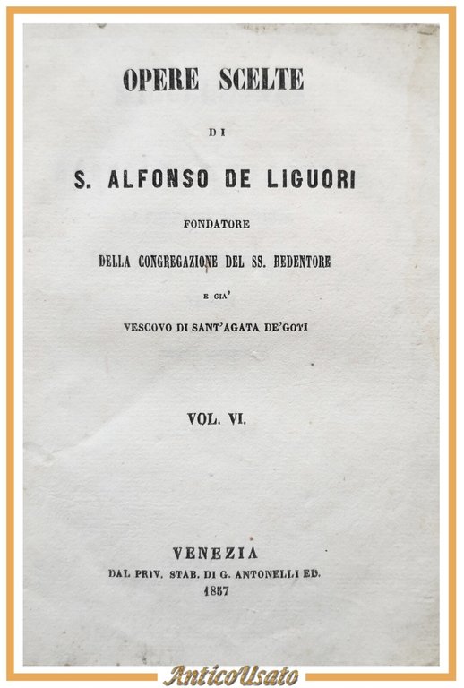 OPERE SCELTE di Alfonso De Liguori volume 6 Miscellanea 1857 Antonelli libro