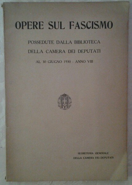 OPERE SUL FASCISMO. POSSEDUTE DALLA BIBLIOTECA DELLA CAMERA DEI DEPUTATI AL 30 GIUGNO 1930 - ANNO VIII.