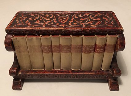 9 volumi: Liriche, tragedie e versi vari, Osservazioni sulla mrale cattolica, I promessi sposi vol I e II, Storia della colonna infame, Scritti filosofici e critici d'arte, Discorso sopra alcuni punti della storia longobardica in Italia, Scritti sulla lingua italiana, La rivoluzione francese del 1789 e la rivoluzione italiana del 1859