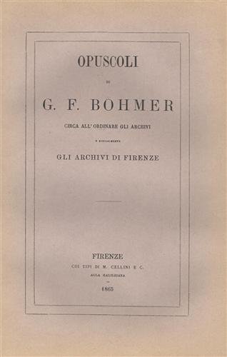 Opuscoli circa all'ordinare gli archivi e specialmente gli archivi di Firenze. | Libri antichi e moderni | Bohmer,G.F.