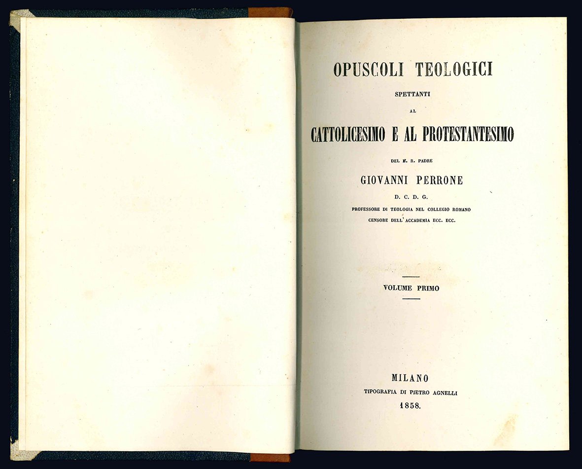 Opuscoli teologici spettanti al Cattolicesimo e al Protestantesimo del M.R. Padre Giovanni Perrone D.C.D.G. professore di teologia nel Collegio Romano censore dell'Accademia ecc. ecc. Volume primo (-secondo).