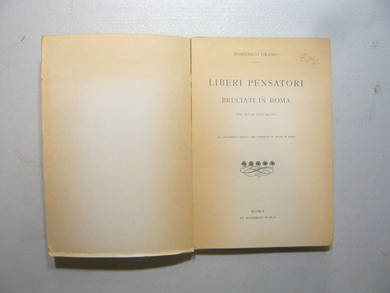 Orano,LIBERI PENSATORI BRUCIATI IN ROMA DAL XVI AL XVIII S.,Bastogi 1971