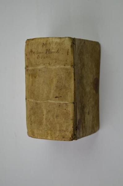 Tre parti in un volume di cm. 12, pp. 758 + 1 cb. Leg. coeva in perg. semirigida. Ben conservato. Legato in fine vi è un'altra opera del Mureto (epistolae, Hymni sacri et poemata omnia) di pp. 368 che però nell'ultima parte presenta vistosi tarli.