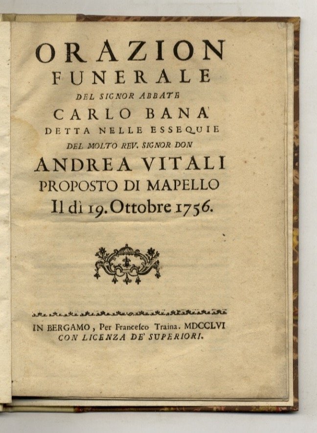 Orazion [sic] funerale [.] detta nelle essequie del molto rev. signor don Andrea Vitali proposto di Mapello il dì 19 ottobre 1756.