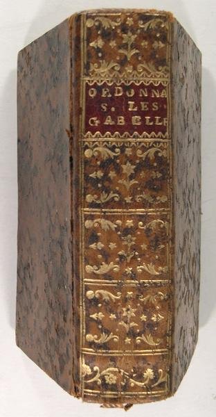 A Paris en 1758, in/16 reliure d'époque, dos orné, 108, 156, 64, 48, 168 pages. Ordonnances de Louis XIV, Roi de France et de Navarre, du mois de mai 1680, portant réglement sur le fait des Gabelles. Régistrée en la cour des Aydes de Paris le 11 mai 1680, du 21 juin 1680 sur le fait des entrées, du 22 juillet 1681 sur les droits de ses fermes, du mois de février 1687 sur le fait des cinq grosses fermes, et du 18 septembre 1664 pour les droits des entrées et sorties des denrées & marchandises, nouvelle édition conforme à celle de l'imprimerie Royale in/4 en 1750.