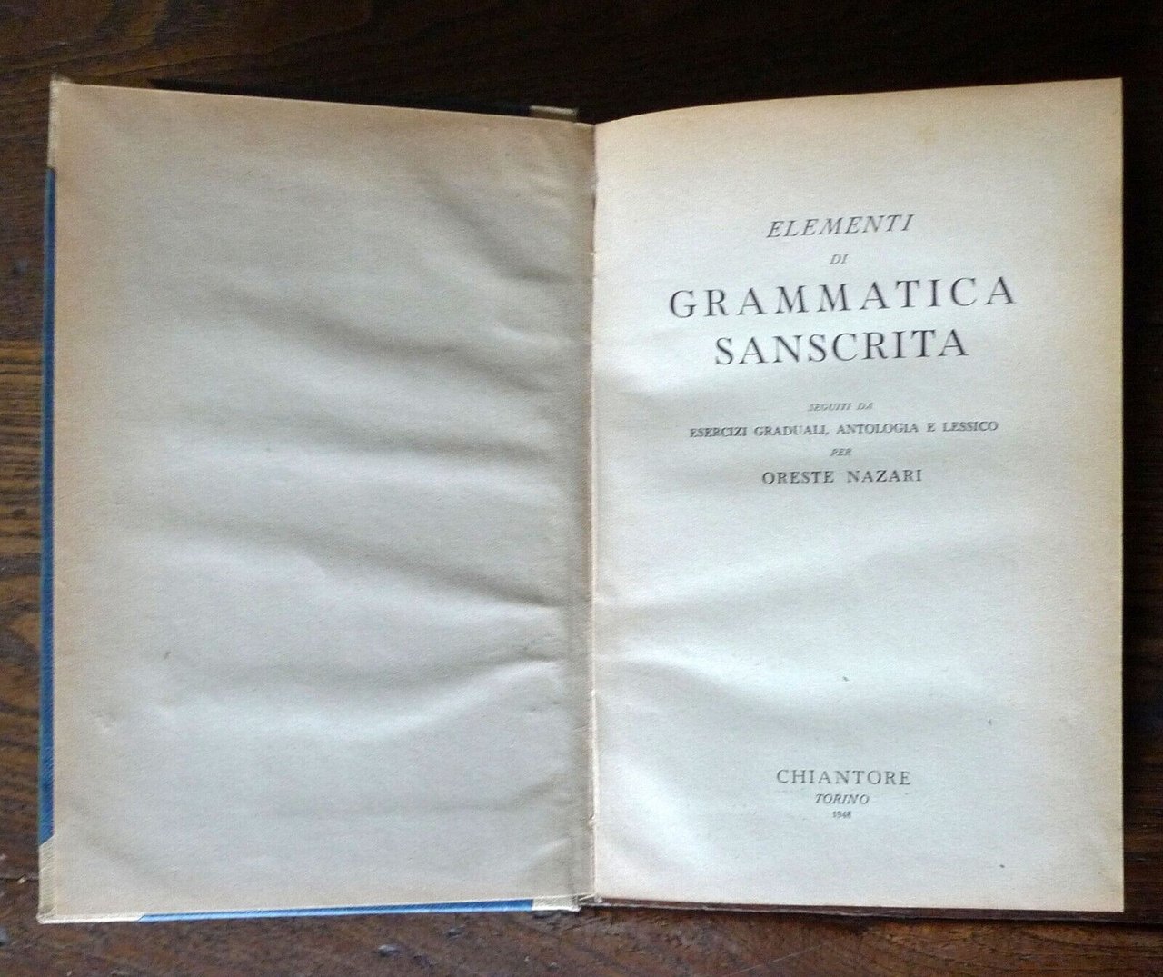 ORESTE NAZARI,ELEMENTI DI GRAMMATICA SANSCRITA,1948 Chiantore[ESERCIZI,LESSICO