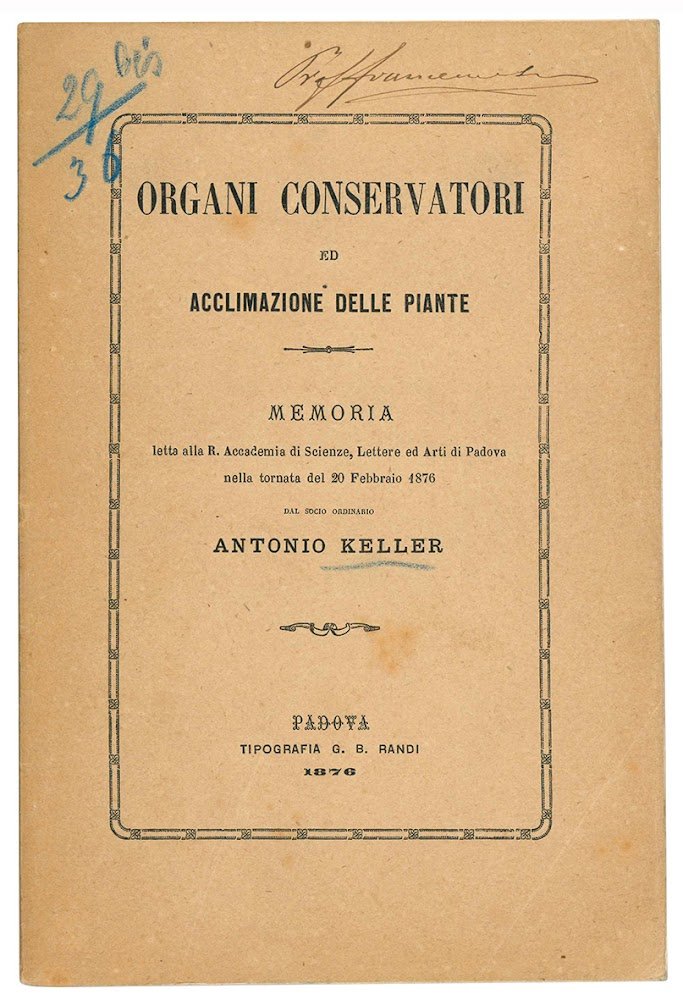 Organi conservatori ed acclimazione delle piante. Considerazioni appoggiate sull'opera di A. Grisebach "La vegetazione della Terra secondo il suo ordinamento climatico" lette alla R. Accademia di Scienze, Lettere ed Arti di Padova nella tornata del 20 Febbraio 1876.