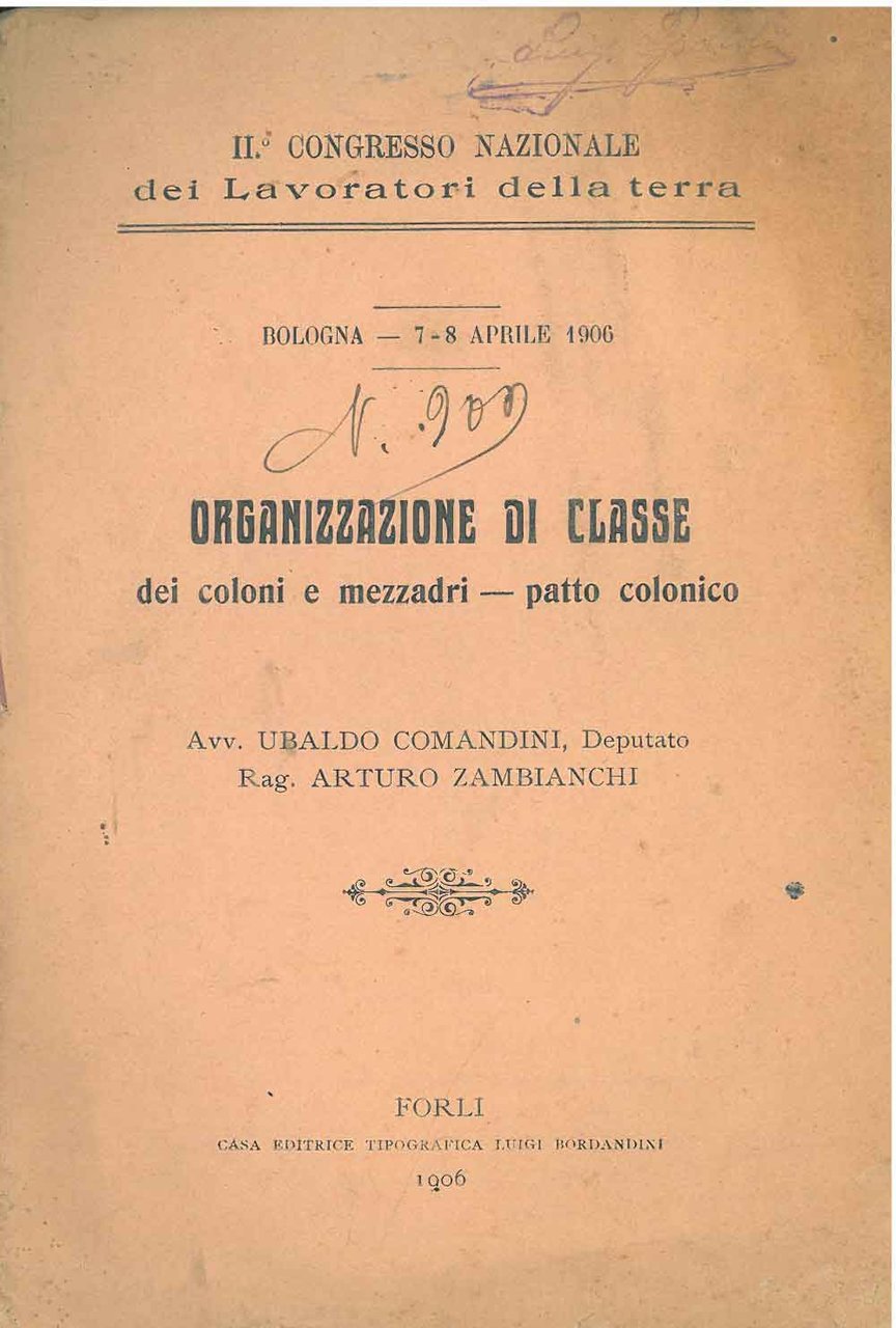 Organizzazione di classe dei coloni e mezzadri - patto colonico. II congresso nazionale dei lavoratori della terra