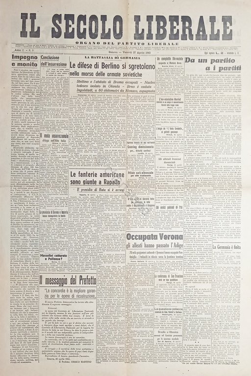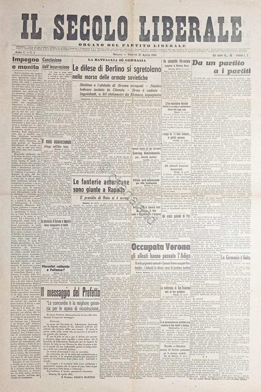 Organo del Partito Liberale Genova - Il Secolo Liberale N. 5 - 27 Aprile 1945